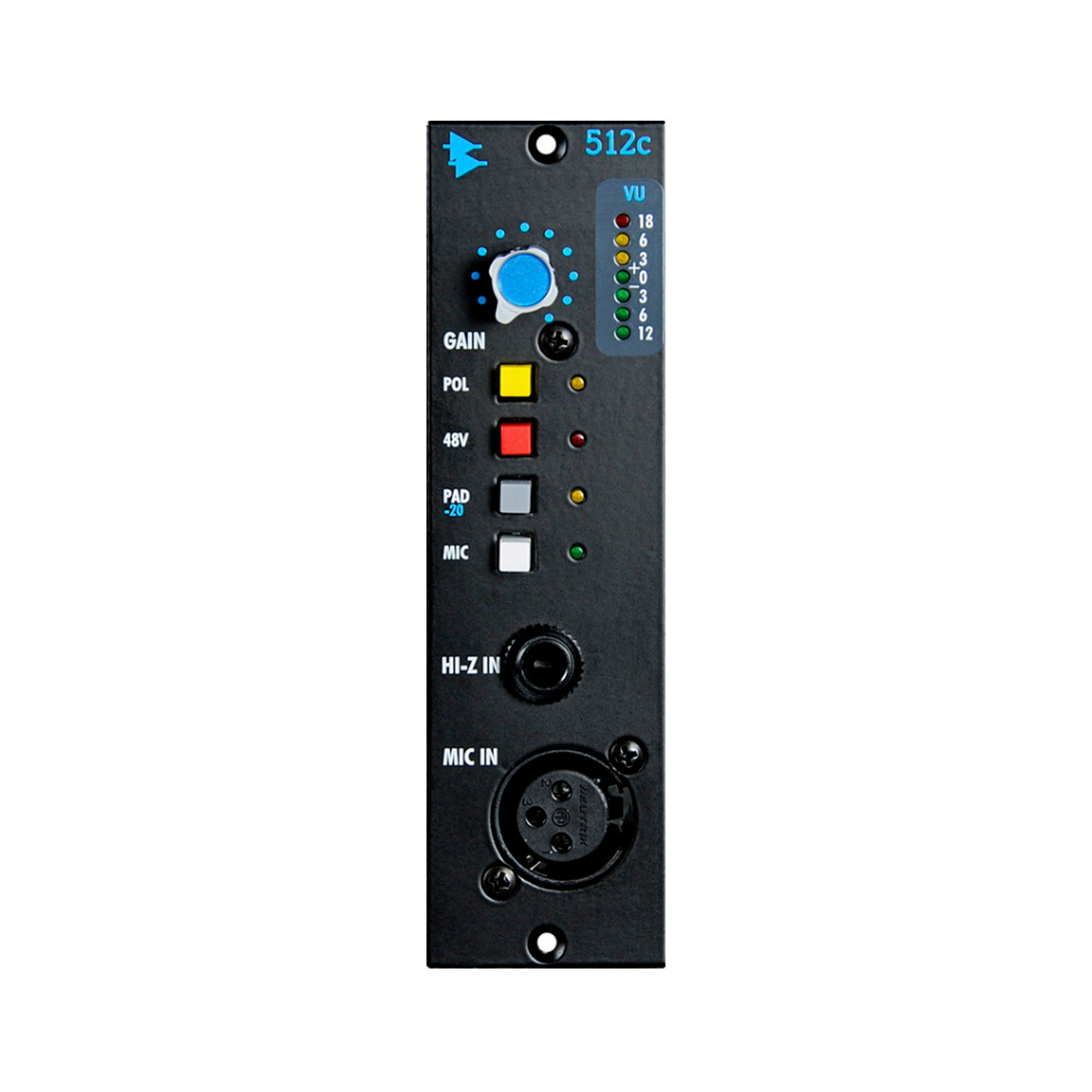 The API 512c is a mic / line / instrument preamp, world famous for its ability to provide a low noise (-129 EIN) and unusually good sounding front end for all types of audio applications. Sonically, it delivers the distinct API sound at an affordable price, and in the scalable API 500 Series format. Offering an impressive 65 dB of gain, the 512c includes phantom power, switchable polarity, -20 dB pad and Mic or Instrument/Line selector. Front panel XLR and 1/4 inch connectors combined with rear panel mic access allows for additional flexibility when installed into an API lunchbox®, API's 10 position 500V vertical rack, or an API console.