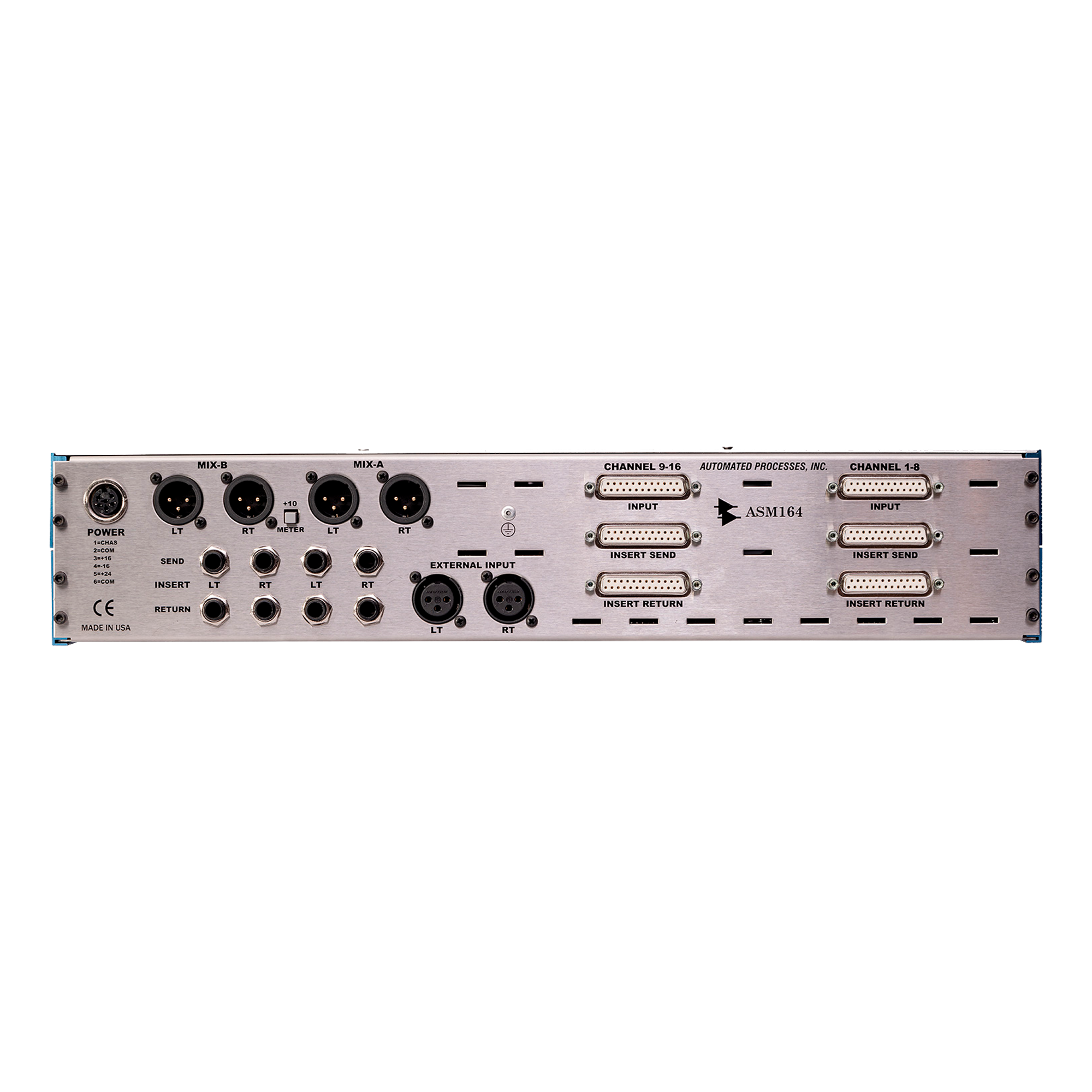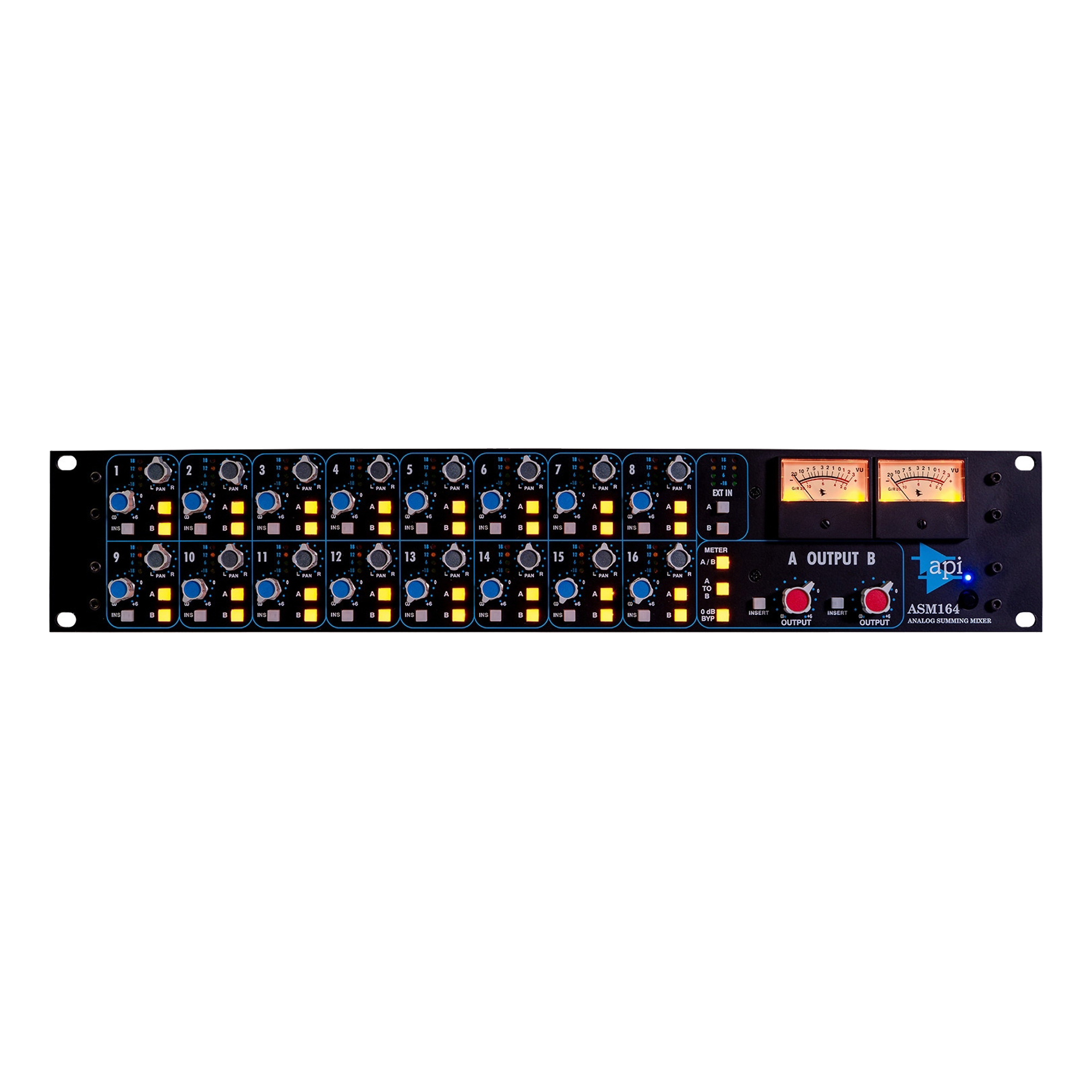 El alma del ASM164 reside en sus rutas de señal totalmente analógicas, que incluyen amplificadores operacionales patentados API 2510 y 2520 en las entradas y salidas, y transformadores de salida personalizados que ofrecen la calidez, la pegada y la claridad características de API. Cada canal (incluidos Mix-A y Mix-B) cuenta con puntos de inserción de envío y retorno para la conexión directa a procesadores externos o bahías de conexión.