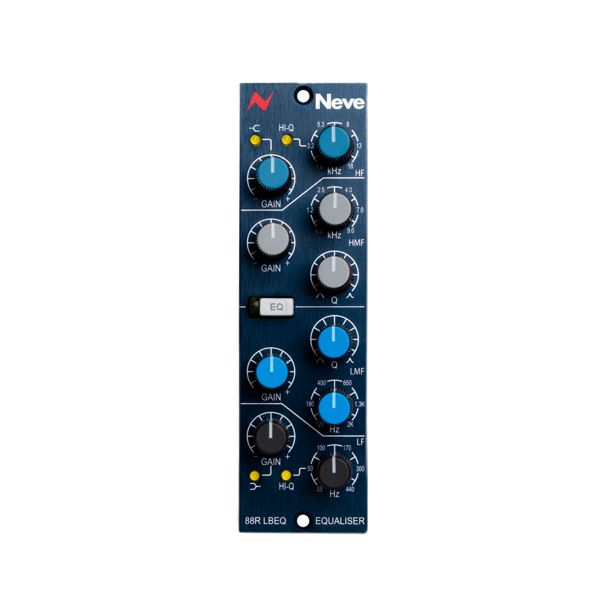 El Neve 88R LBEQ es un ecualizador totalmente paramétrico de 4 bandas de la Serie 500, basado en la reconocida circuitería analógica de la emblemática consola 88RS. Diseñado y fabricado a mano en Inglaterra, el 88R LBEQ destila la precisión, la musicalidad y la transparencia de la consola de estudio de gran formato más avanzada del mundo en un módulo compacto de una sola ranura de la Serie 500. Al combinarse con los módulos 88R LB y 88R LBC, los ingenieros pueden crear una cadena de señal 88RS totalmente auténtica dentro de un chasis de la Serie 500, ofreciendo una integración perfecta y un rendimiento homogéneo en toda la gama. Con la misma calidad sonora que han demostrado estudios emblemáticos como Abbey Road, AIR Studios y The Village, el 88R LBEQ ofrece una ecualización de élite a los estudios híbridos modernos que buscan una modelación de sonido analógica sin concesiones.