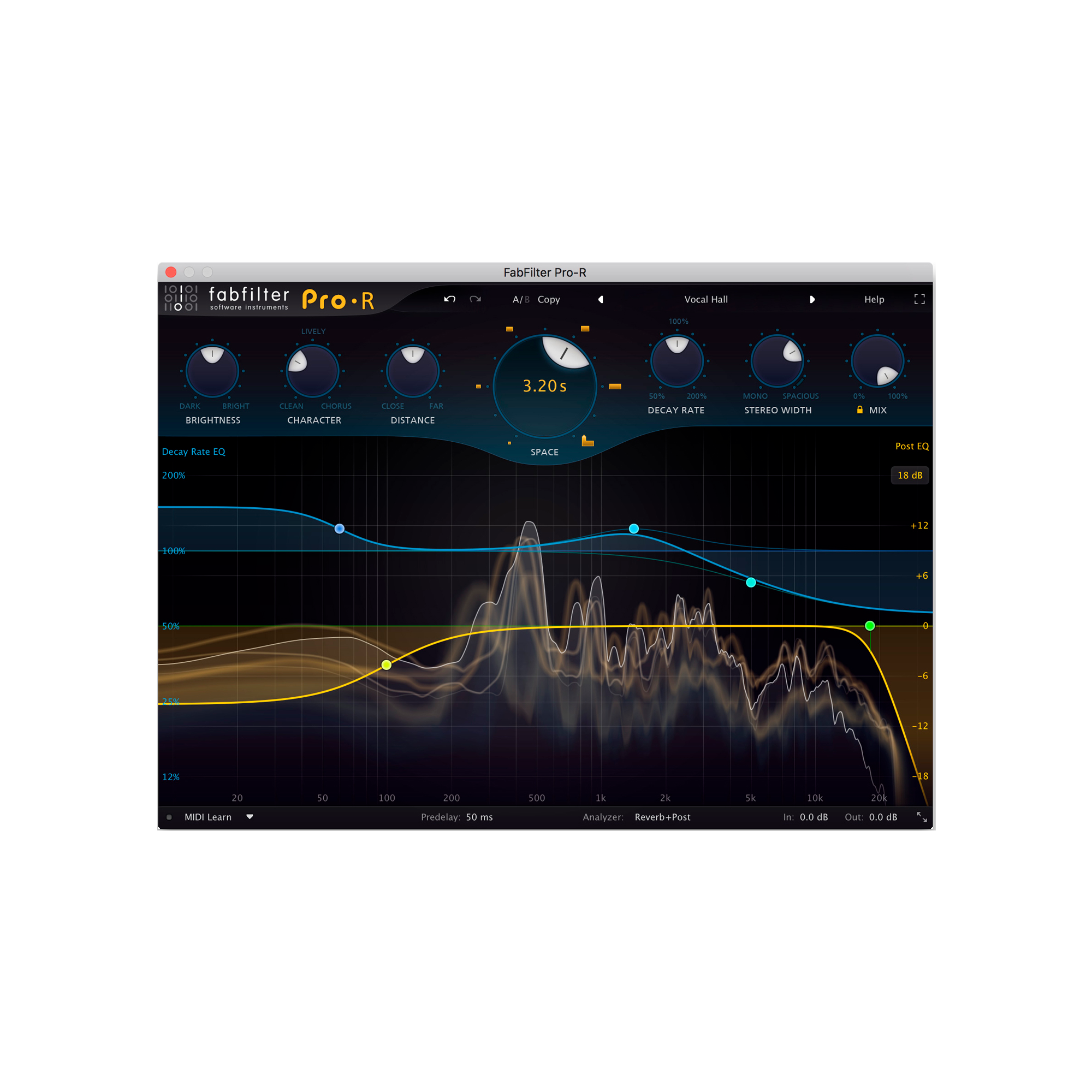 - Gorgeous Retina interface with large interactive reverb display featuring Decay Rate EQ and Post EQ curves