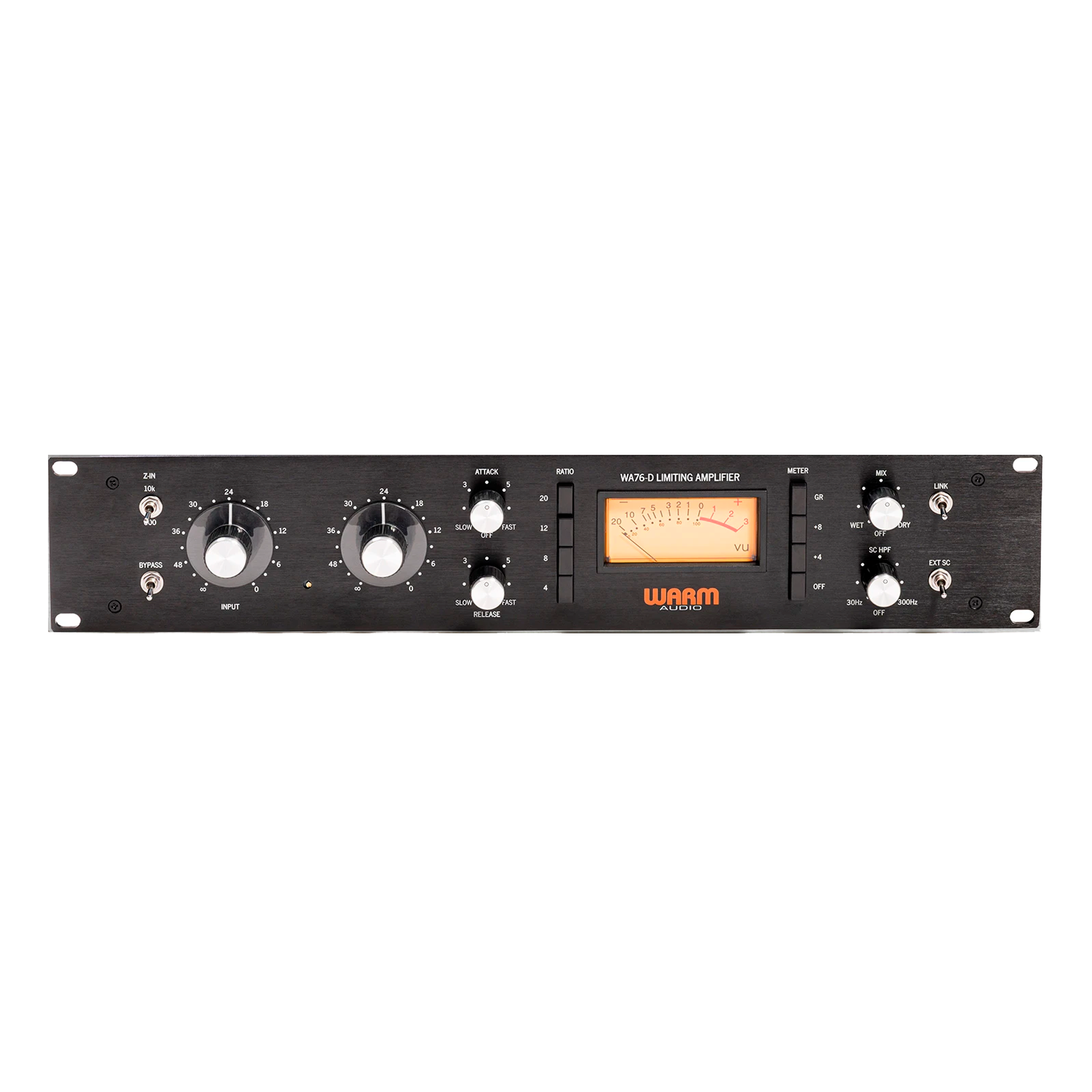 El WA76-D ofrece un diseño de circuito clásico y todos los controles de compresión tradicionales de estilo 76: ataque, liberación, relación, entrada, salida y pantalla de medidores. Además de los controles clásicos que se esperan de un compresor de estilo 76, el WA76-D ha agregado enlace estéreo, mezcla seca/húmeda para compresión paralela, sidechain externo, impedancia de entrada seleccionable, bypass activo y real, y un filtro de paso alto de sidechain variable para abordar los graves rebeldes que dominan la atención del compresor.