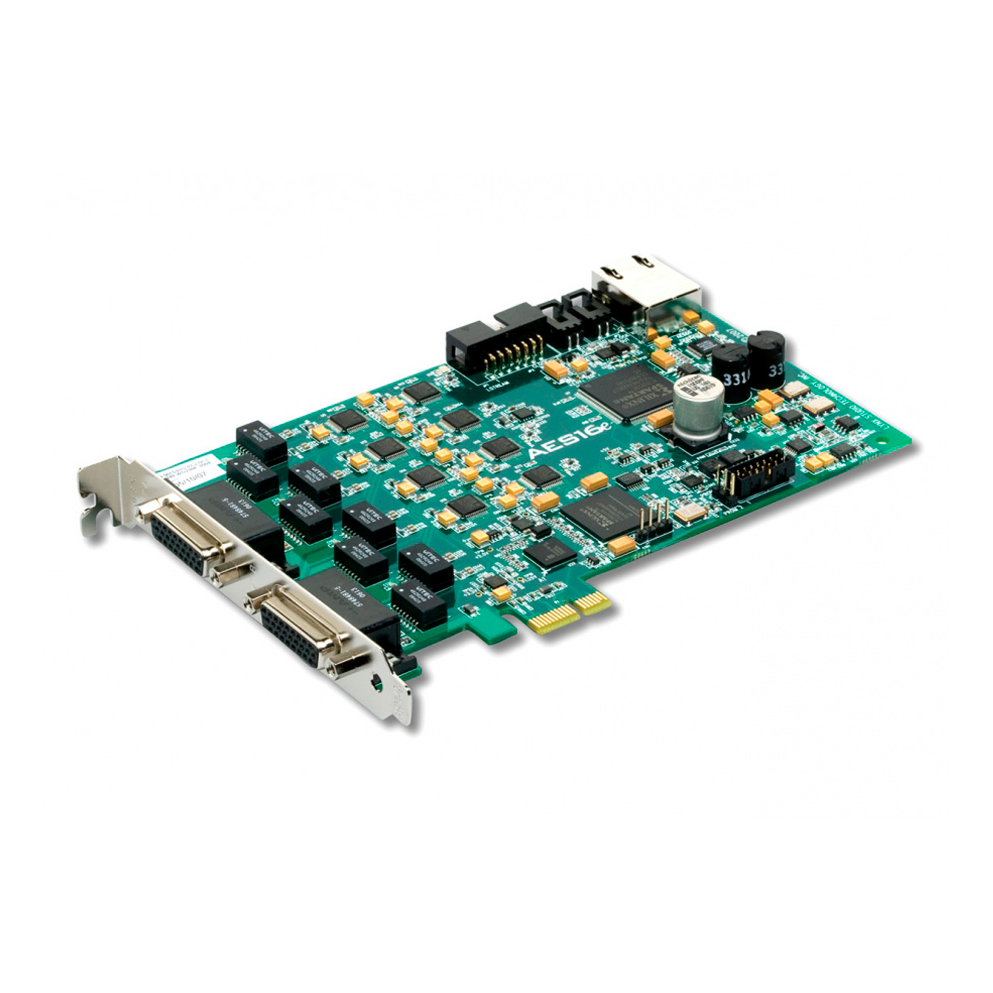 La tarjeta Lynx AES16e AES/EBU ofrece dieciséis canales de audio digital AES/EBU con frecuencias de muestreo de hasta 192 kHz en formato PCI Express 1x. Diseñada para integrar consolas digitales, convertidores A/D y D/A multicanal, grabadoras de disco duro, estaciones de trabajo de audio digital y otros equipos de audio digital, la AES16e es compatible con los sistemas operativos Windows y Macintosh. La AES16e incluye todas las funciones de la AES16, además de un mezclador digital de 32x16, 16 canales opcionales de conversión de frecuencia de muestreo e interfaz AES50 opcional, que permite la transmisión de hasta 48 canales de audio digital por cable CAT5e.